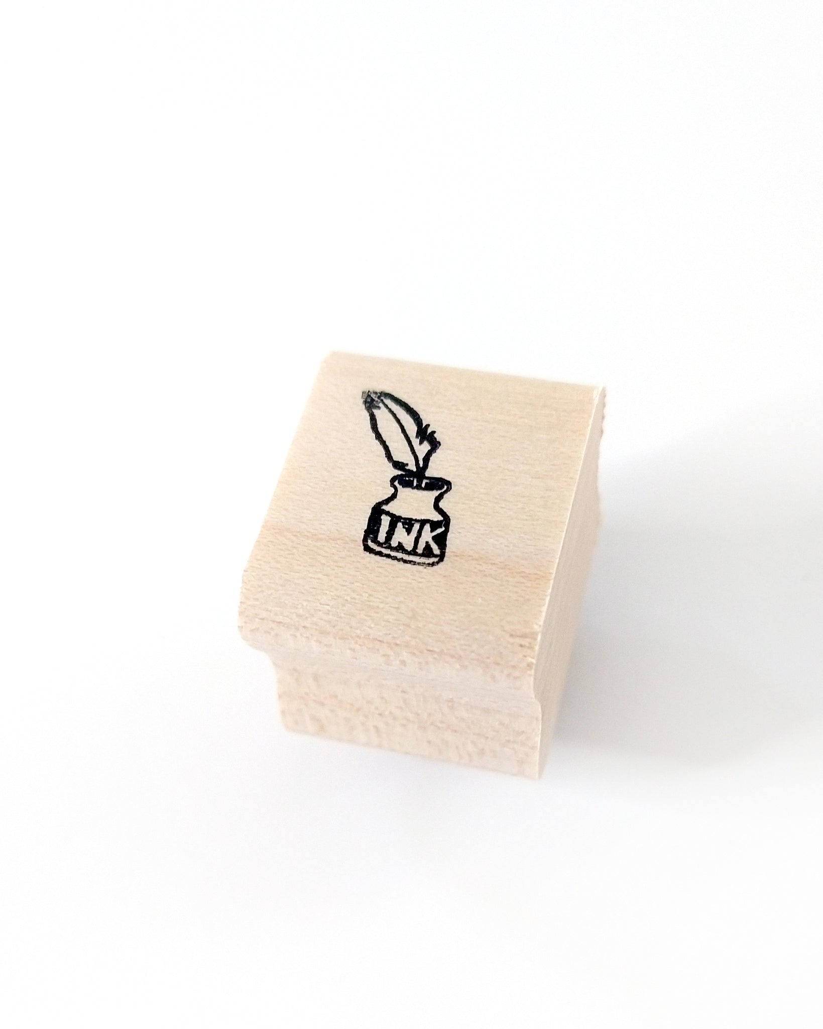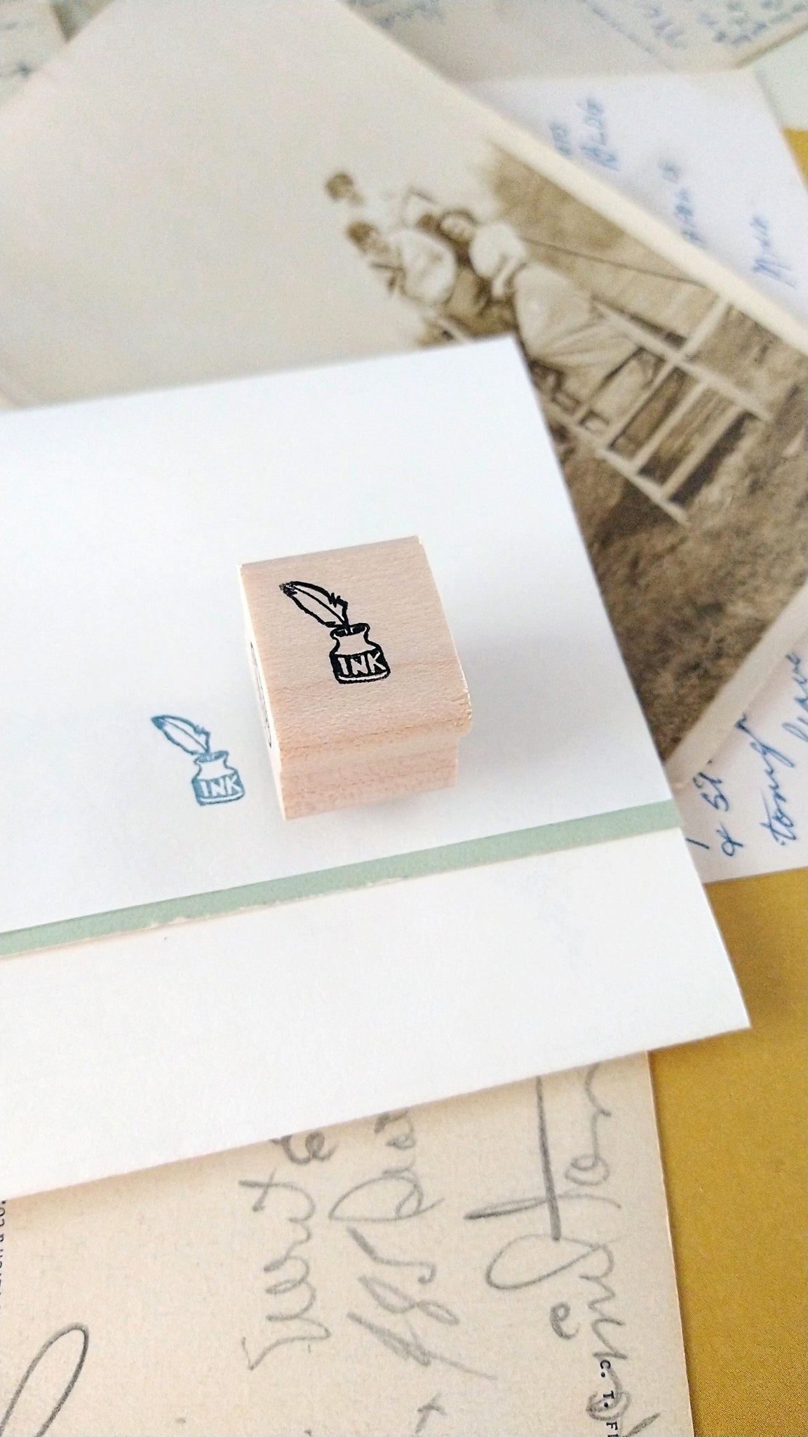 This ink and feather pen mini stamp has a fun vintage stationery vibe.